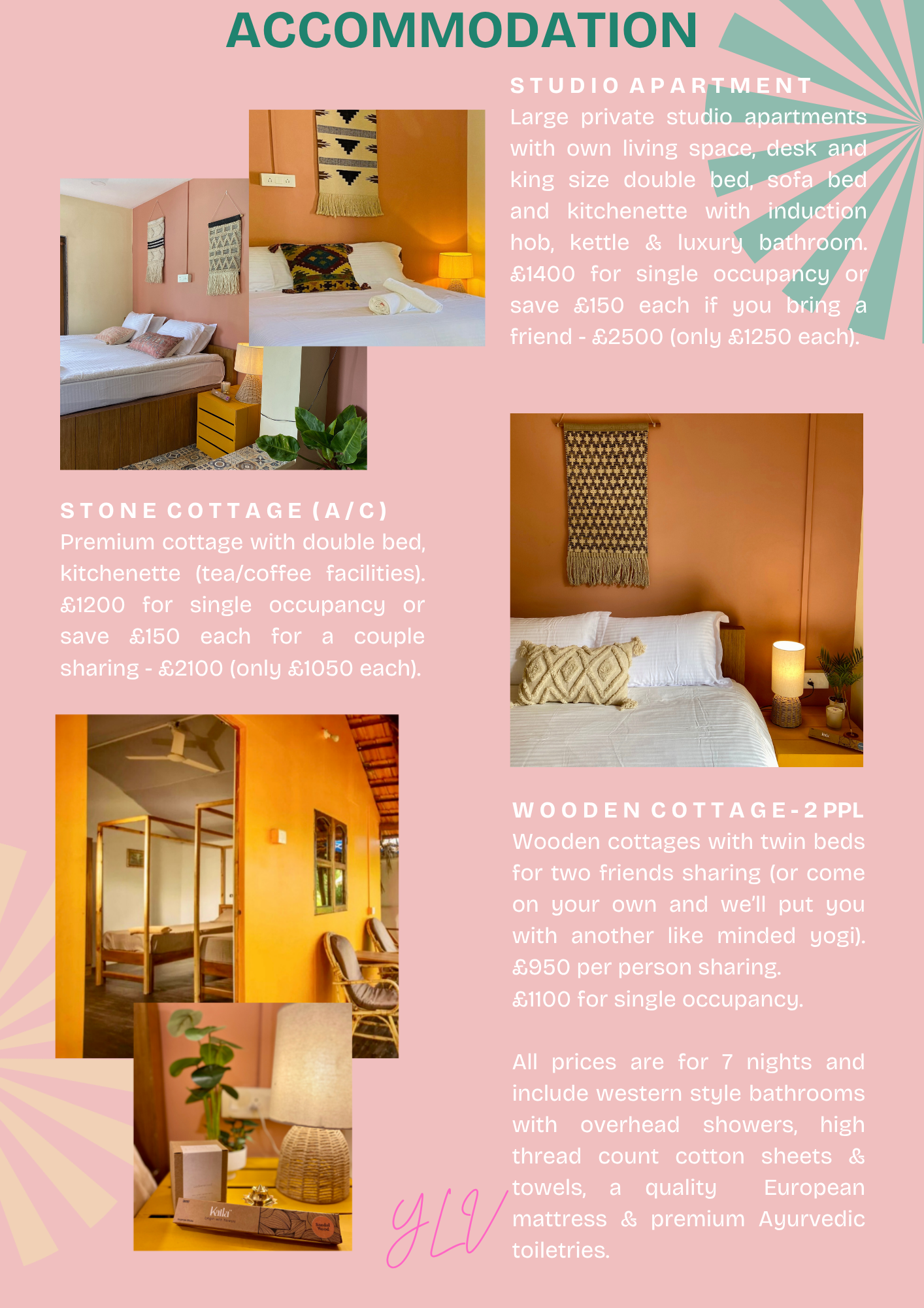 Luxury Suite (Single Occupancy): £1950 per person.